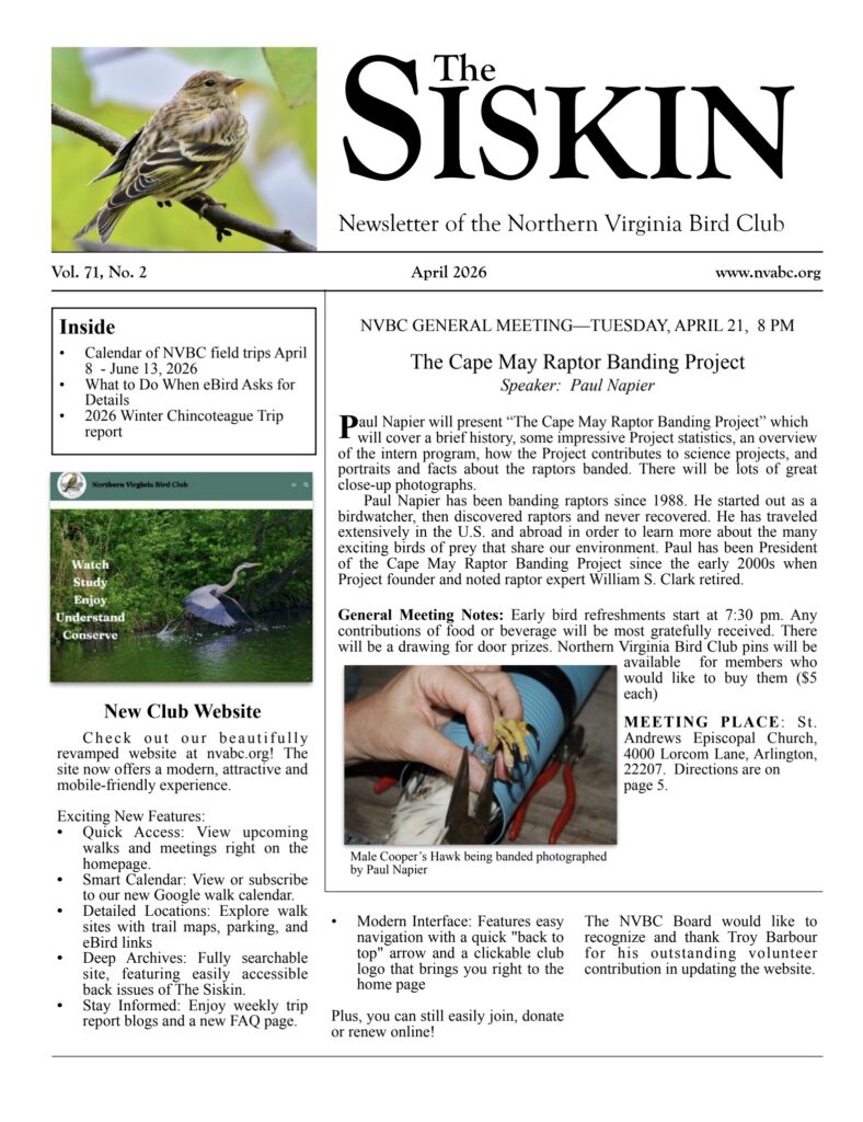 The most recent version of the NVBC Newsletter - "The Siskin" - is available by clicking on the icon below ;