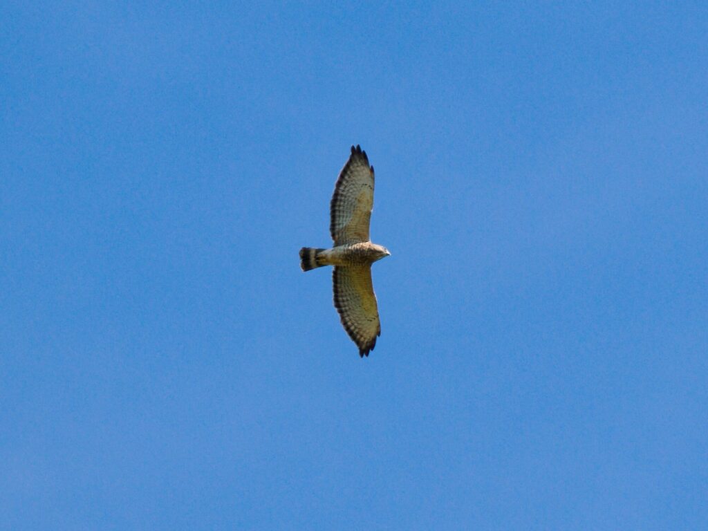 And then, oh, and then, the sky became the stage. A Cooper’s Hawk carved lazy circles overhead, commanding our attention, but nothing could have prepared us for what followed. A Broad-winged Hawk materialized above us, gliding with effortless grace, offering a long, generous look that had everyone grinning ear to ear. Minutes later, as if the universe wanted to truly spoil us, a kettle of five more Broad-wingeds spiraled together on a thermal column, riding the invisible highways of warm air northward on their ancient migration route. For several members of our group, this was a life bird, that magical first-ever sighting that every birder treasures forever. You could see it on their faces: that quiet, electric wonder that reminds us exactly why we lace up our boots and head out into the world with binoculars in hand. Days like this are why we do it.