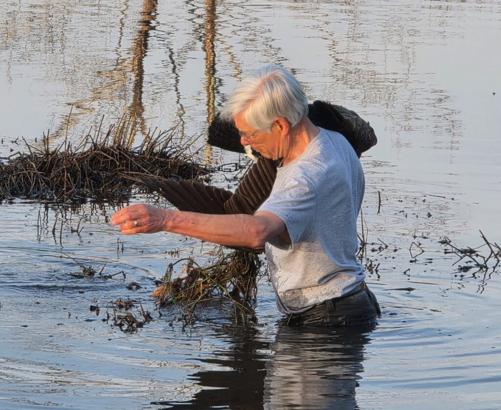 Ed rescuing a Canada Goose by Cindy Nickerson